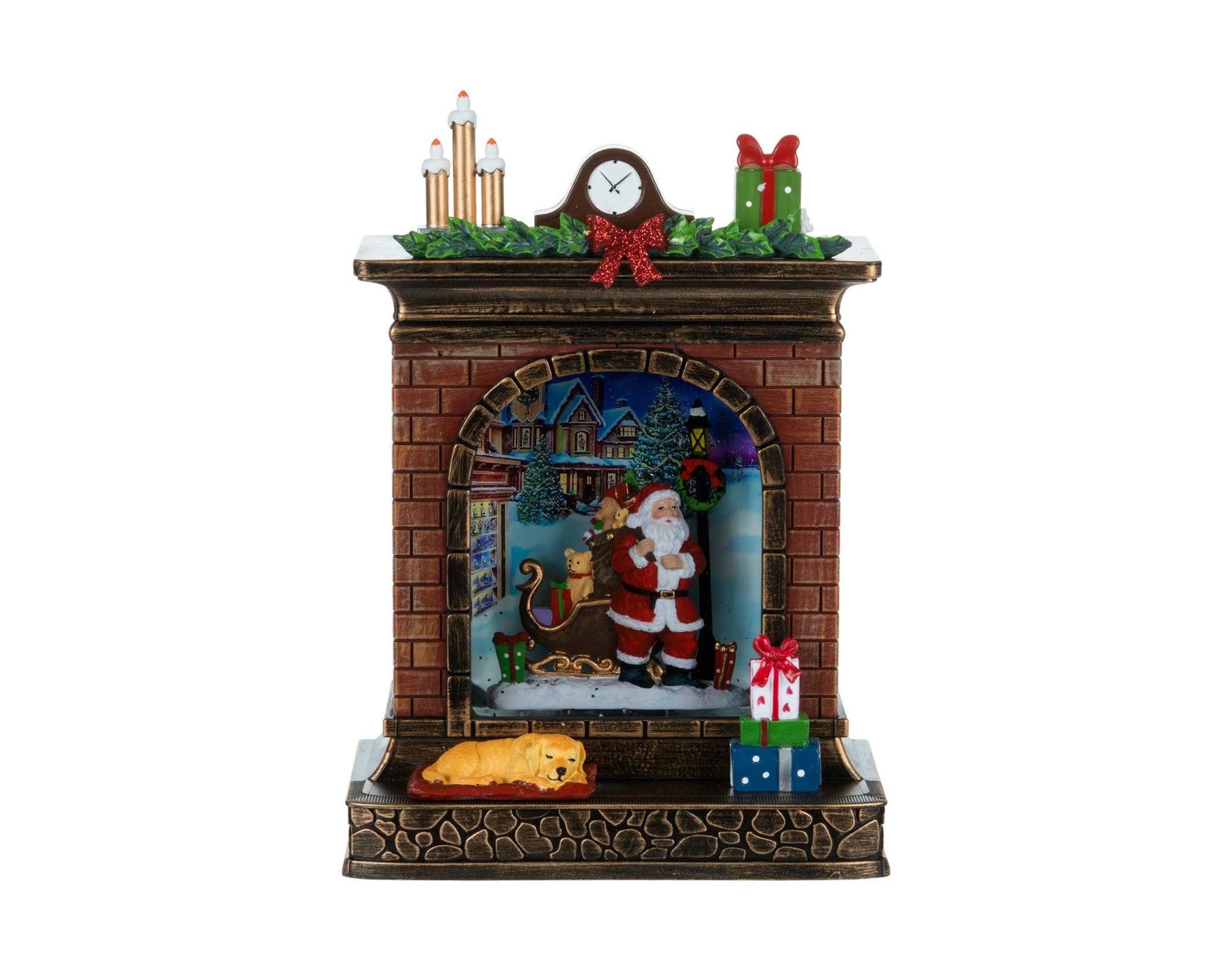 10" Fireplace Water Globe w/Santa Scene, Dog & LED Lights