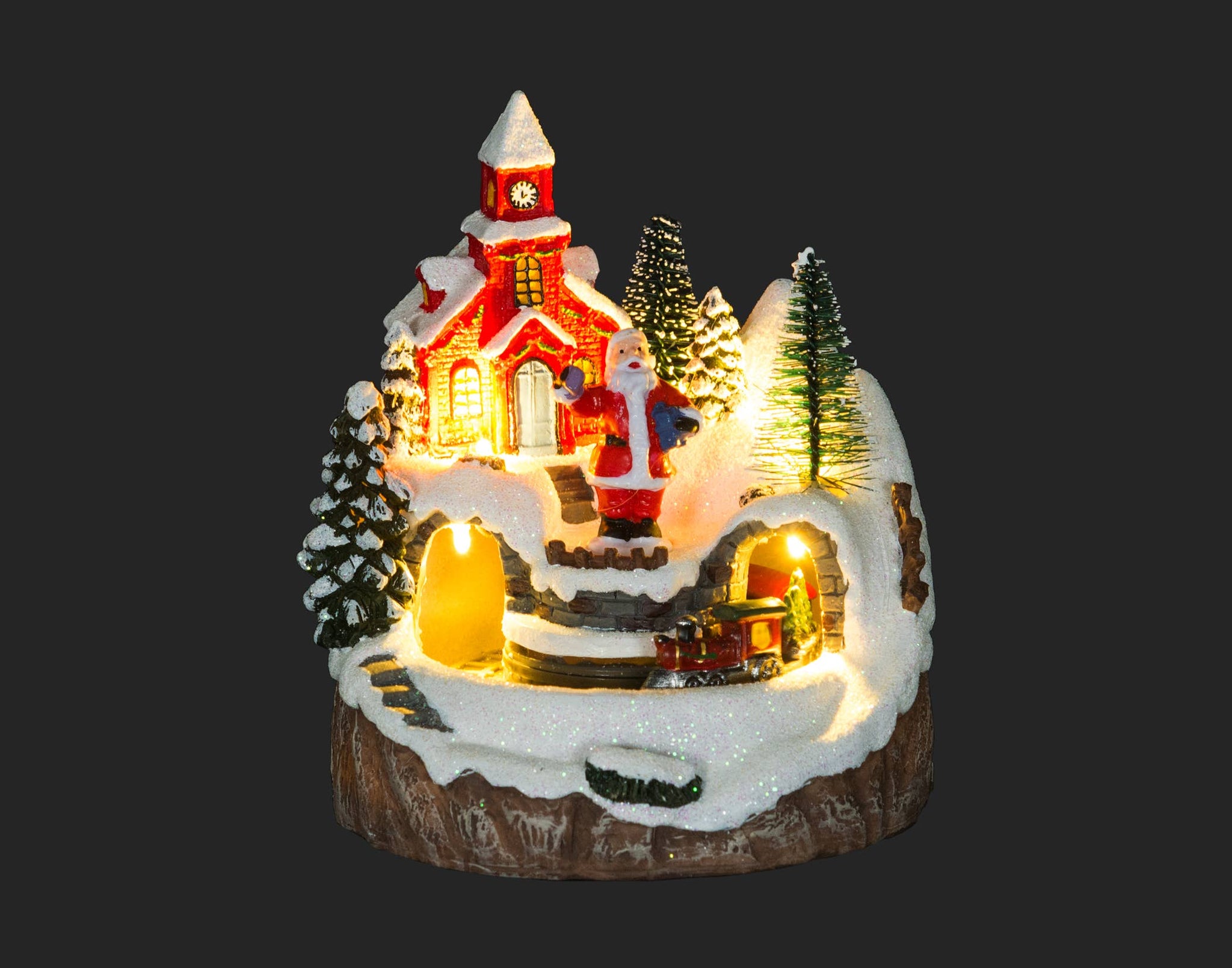 6" 3D LED Scene w/Santa, Moving Train, Church & Music