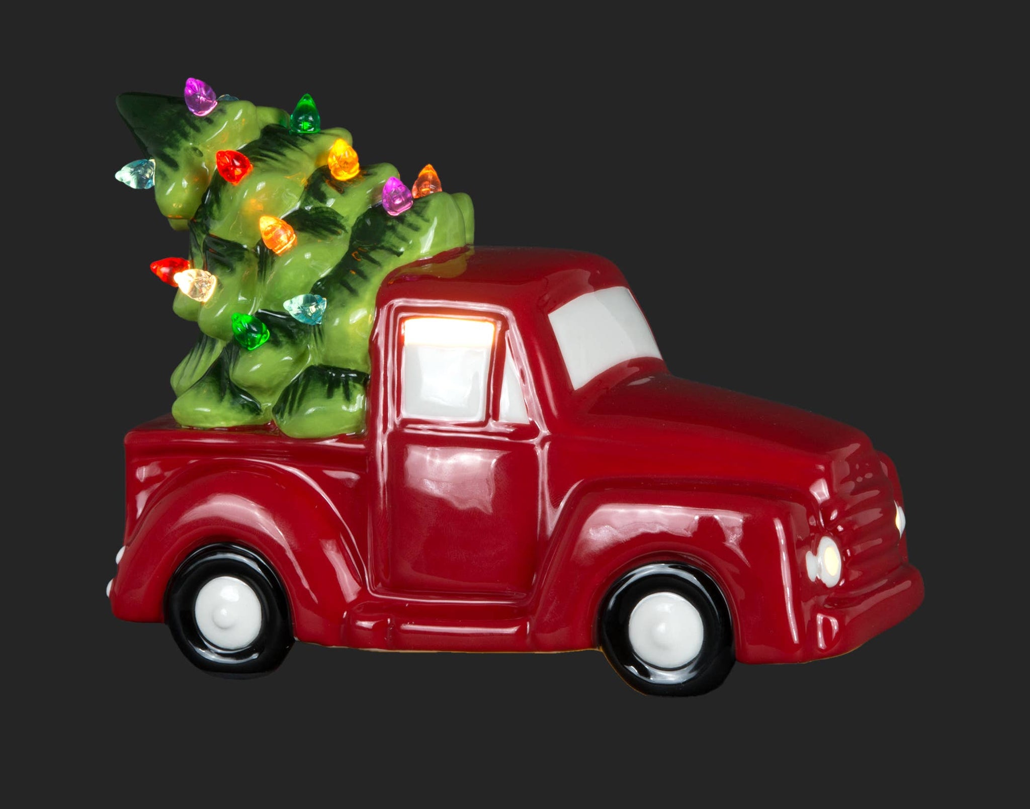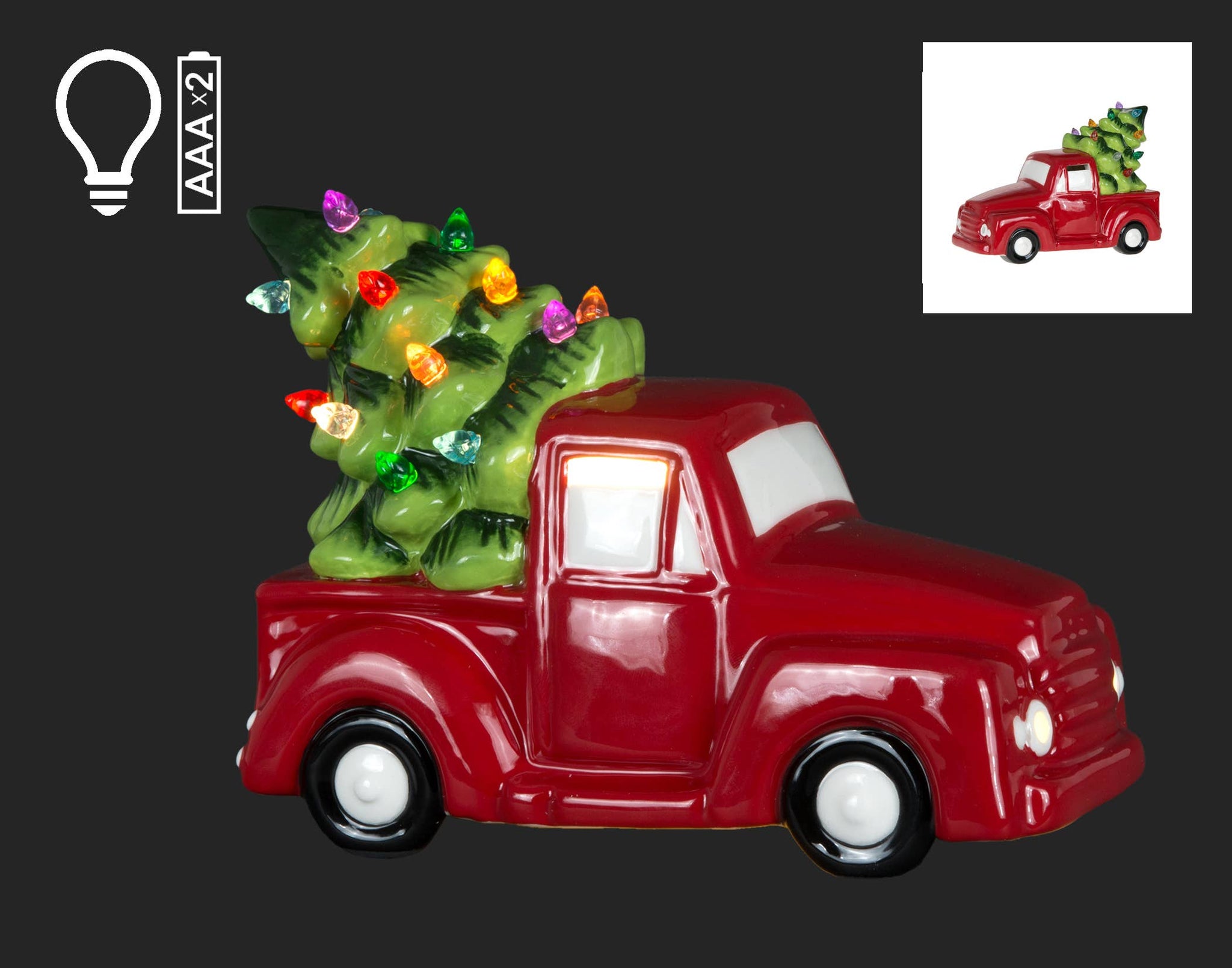 Add a nostalgic touch to your holiday décor with this old red pickup truck carrying a festive Christmas tree with LED lights in the back. The vintage-style truck, complete with weathered detailing and classic charm, is paired with a huge Christmas tree that evokes the spirit of a rustic holiday tradition.