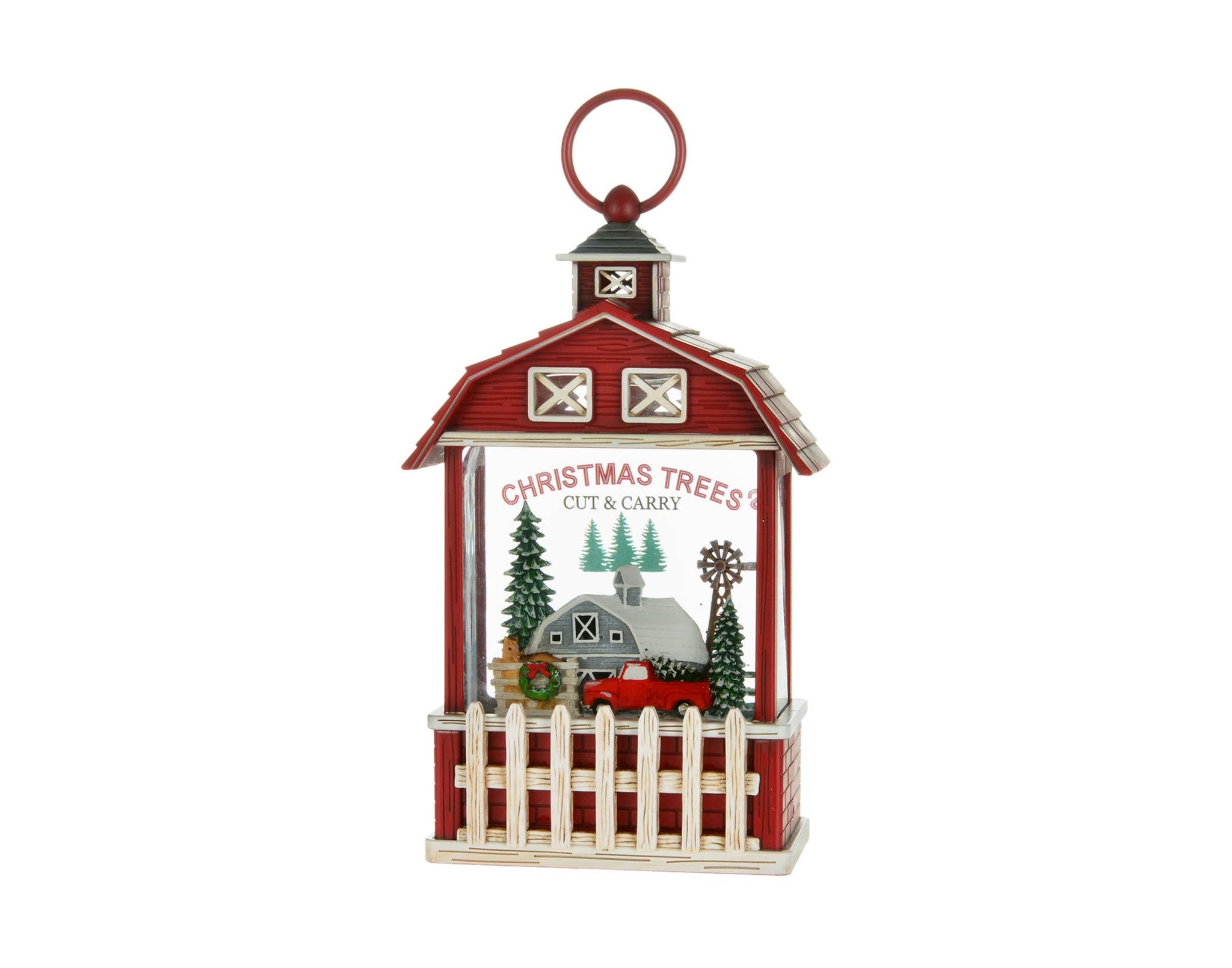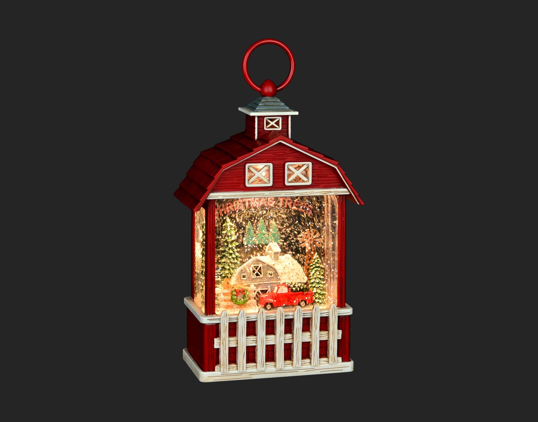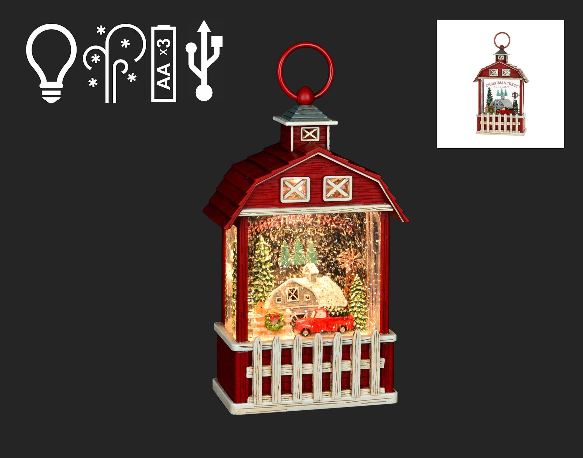 9.5" Red Barn Snow Globe w/Truck, House & LED Lights